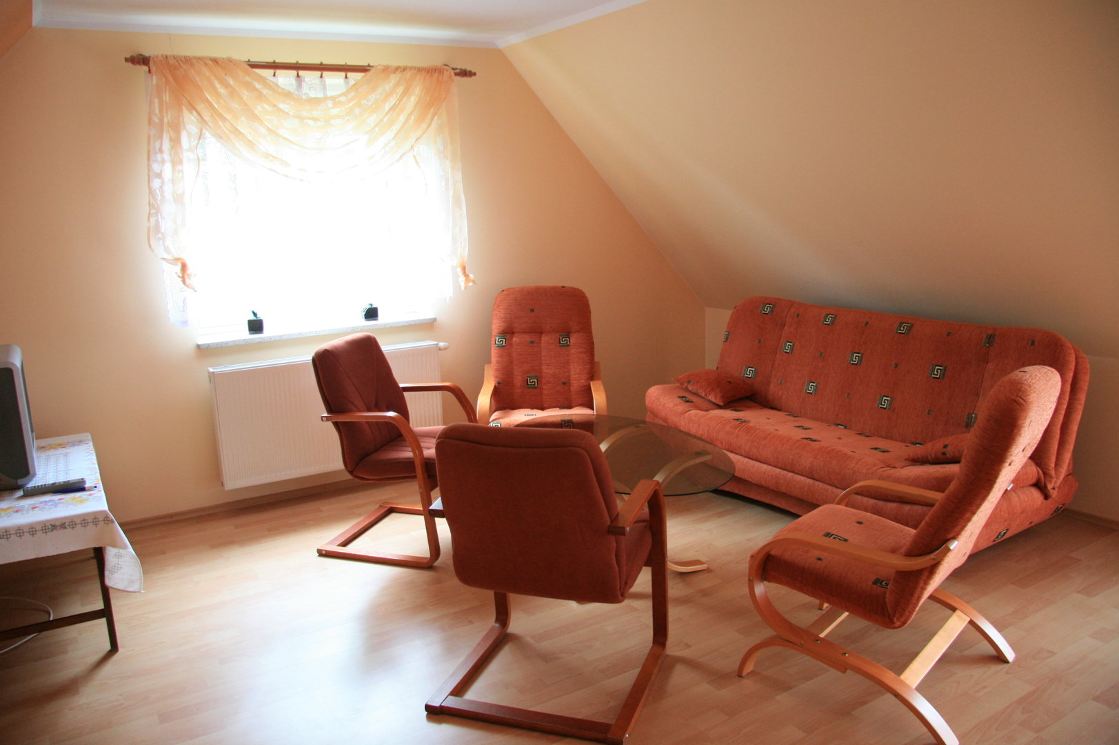 5 osobowy apartament z sypialnią pokojem dzienny z wyjściem na balkon, łącznie 47m2 i łazienką.